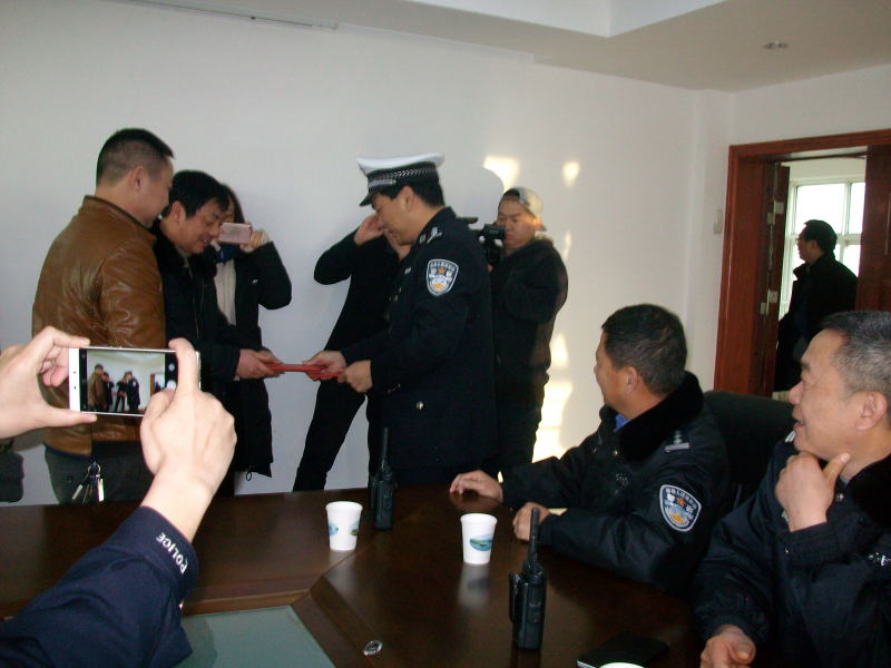 后經交警事故處理大隊多方查找見義勇為的的哥,才知道是出租汽車公司的兩名的哥。于是便有了交警支隊長上門表彰的哥的一幕。