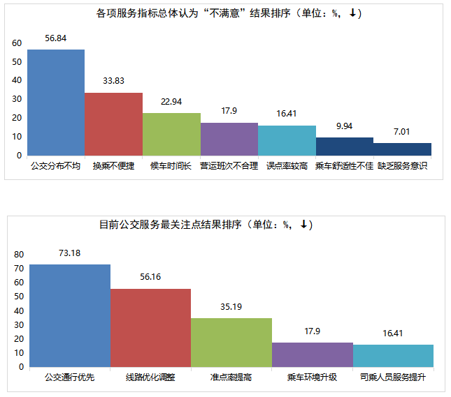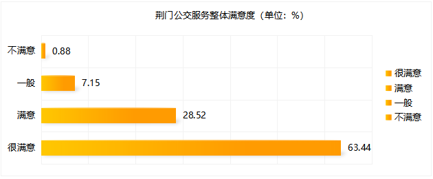 本次調(diào)查共收集有效問卷1471份,623條相關(guān)問題及建議。問卷涵蓋公交線網(wǎng)優(yōu)化、文明服務(wù)、換乘便捷度、候車時(shí)間、乘車舒適度、智能信息建設(shè)等多方面內(nèi)容。調(diào)查顯示,參與投票人群年齡結(jié)構(gòu)主要集中在18~59歲,其中以40~59歲為主體。(一)公交服務(wù)滿意度指標(biāo)及數(shù)值根據(jù)交通運(yùn)輸部GB/T 36953.2-2018城市公共交通乘客滿意度評價(jià)方法,公共交通乘客滿意度指乘客對公共交通服務(wù)質(zhì)量的滿意程度,評價(jià)程度設(shè)置為“很滿意”、“滿意”、“一般”與“不滿意”。問卷顯示荊門公交服務(wù)整體滿意度為91.96%。問卷顯示公交線網(wǎng)分布不均、線路不合理、換乘不便捷為主要服務(wù)訴求,公交線路分布不均為“不滿意度”投票最高問題;主干道公交優(yōu)先通行權(quán)為服務(wù)訴求投票最高關(guān)注點(diǎn)。 此次問卷調(diào)查,感謝廣大市民乘客的積極參與,市公交集團(tuán)將結(jié)合實(shí)際,認(rèn)真聽取、采納乘客提出的意見及建議,予以改進(jìn): 關(guān)于線路運(yùn)營方面,對5路線(圣境山—?;郏?、88路線(東寶碧桂園—楊家橋)、58路線(碧桂園北—漳河新區(qū)政務(wù)中心)、59路線(荊楚理工學(xué)院—掇刀區(qū)政務(wù)中心)早中晚客流高峰期加密營運(yùn)班次和增設(shè)區(qū)間班次,對33路線(楚天學(xué)校—興化三路東)、69路線(雙喜小學(xué)—園博園東門)、13路線(牌樓—園博園西門)進(jìn)行線路優(yōu)化,方便沿線居民出行需求;近期擬開通碧桂園翡翠公館至長崗萬人社區(qū)、東寶政務(wù)中心至市政務(wù)中心公交線路,具體方案正逐步規(guī)劃中。