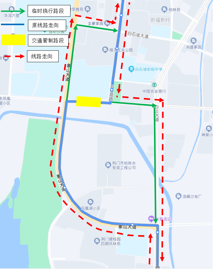 (?;邸L城汽車產(chǎn)業(yè)園)方向,線路調整為:長坂坡路—關公大道—白云大道。