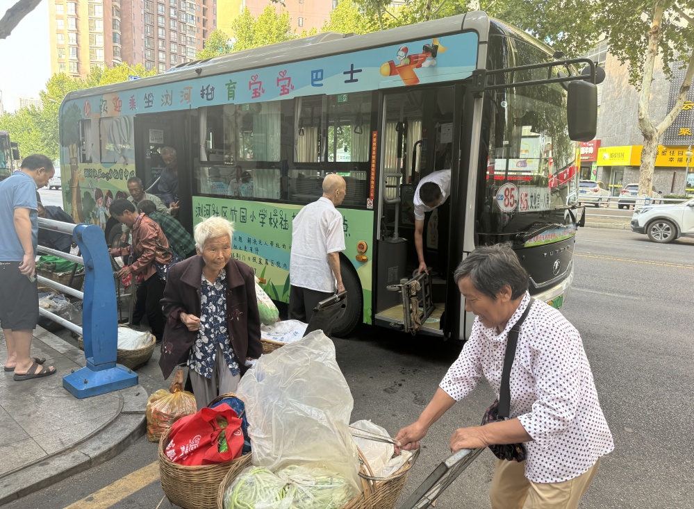 6時(shí)30分,石大娘趕到85路公交車始發(fā)站,她并不是最早一個(gè),許多鄉(xiāng)親也正等待著“菜籃子”專車到來。