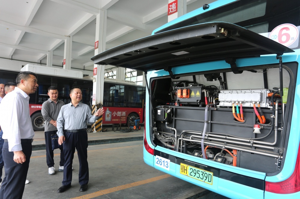▲市政府國資委副主任鄧興權(quán)(右一)到市公交集團(tuán)安全檢查