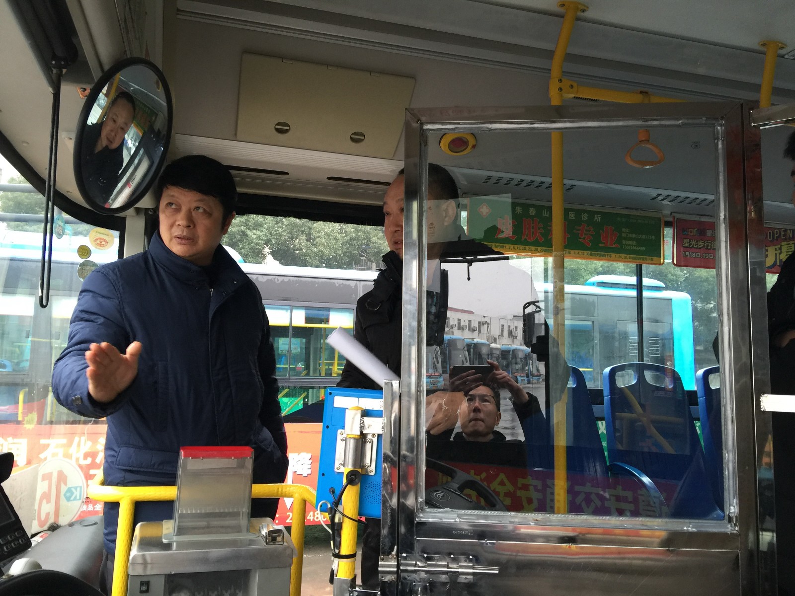 市交投公司黨委委員、荊門(mén)公交集團(tuán)董事長(zhǎng)趙吉美匯報(bào)有關(guān)情況,督查組一行查看了公交集團(tuán)公司兩臺(tái)公交駕駛室防護(hù)裝置樣品車(chē)輛情況,和企業(yè)負(fù)責(zé)人現(xiàn)場(chǎng)研究生命防護(hù)裝置設(shè)置樣式,本著安全、美觀(guān)、經(jīng)濟(jì)的原則確定了下一步安裝的標(biāo)準(zhǔn)。