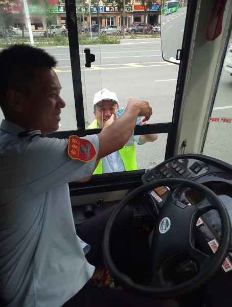 “目前還有小部分線路的公交車是沒有空調(diào)的,就算夏天再熱也得堅(jiān)持,現(xiàn)在天這么熱,一天下來衣服都不知道要濕多少次。今天有他們給我們送來的礦泉水,讓我們司機(jī)在這夏日里體會(huì)到了一絲清涼,真的很感謝他們。有了他們的支持和理解,我們更要做好本職工作?!惫患瘓F(tuán)工作人員說。