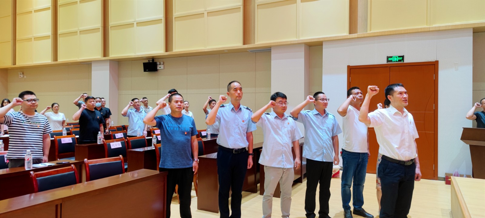在“七·一”黨員宣誓、“兩優(yōu)一先”表彰大會(huì)環(huán)節(jié)。大會(huì)首先伴隨著雄壯的國歌聲正式拉開序幕。然后,領(lǐng)誓人公汽一公司書記肖剛與新進(jìn)正式黨員、納新預(yù)備黨員,以及在場老黨員們一起重溫了入黨誓詞。其次,新進(jìn)正式黨員為納新的預(yù)備黨員佩戴了黨徽。